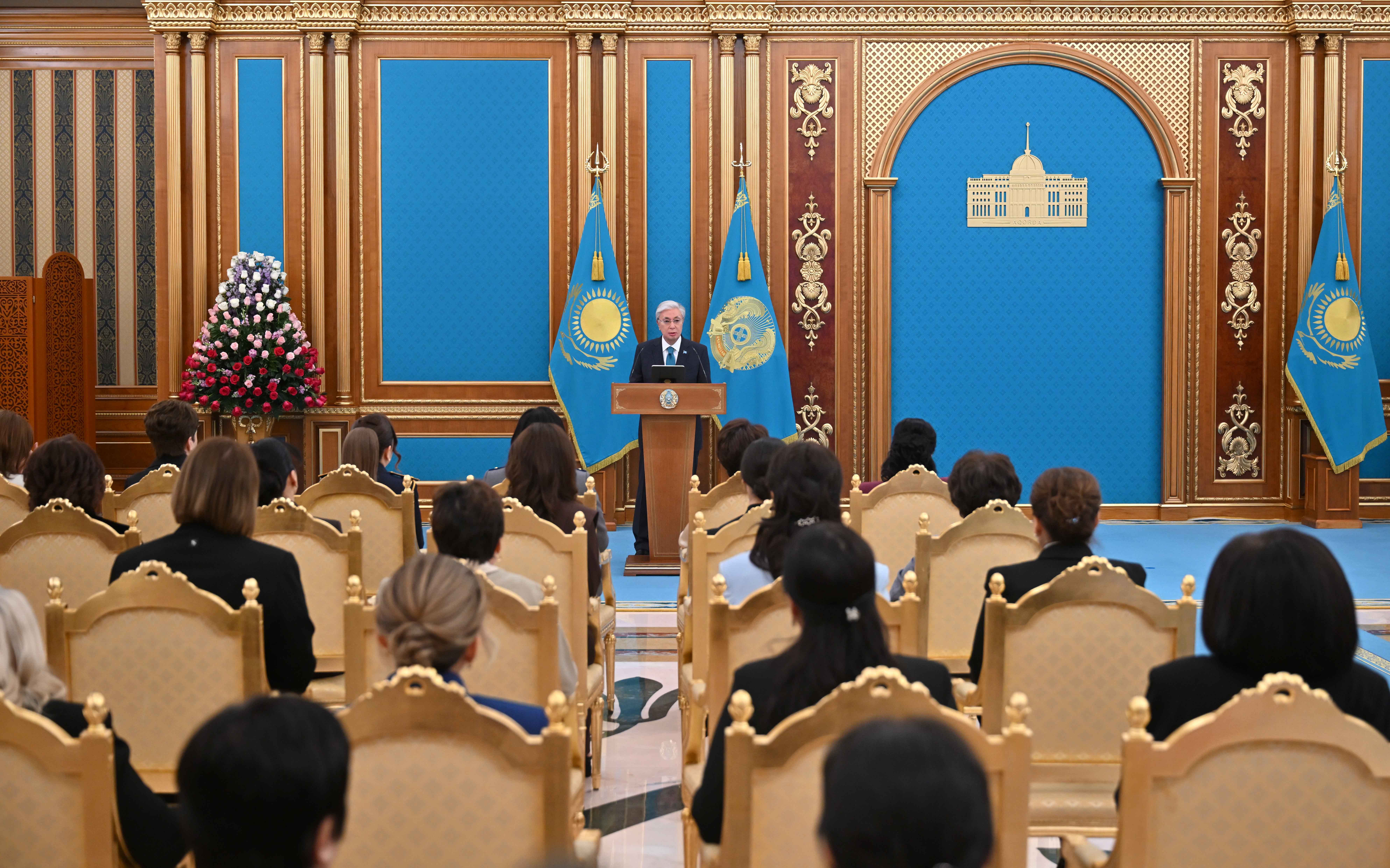 – Бұл мейрам – мейірім мен жылулықтың, даналық пен сұлулықтың нышаны. Әйел – тіршіліктің тірегі, берекенің бастауы. Бұл – ақиқат. «Бесікті де, әлемді де тербеткен» әйелдің жүрегі – ізгіліктің мекені. Сондықтан әйелдің қадірі – елдің қадірі деп айтсақ артық болмайды. Бүгін мен Ақорда төрінде Сіздерге және барша Қазақстан әйелдеріне зор ризашылығымды және алғысымды айтамын. Халқымыз қай заманда да анасын ардақтаған, қарындасына қорған болған, қыздарын сыйлап, төрінен орын берген, – деді Мемлекет басшысы.
